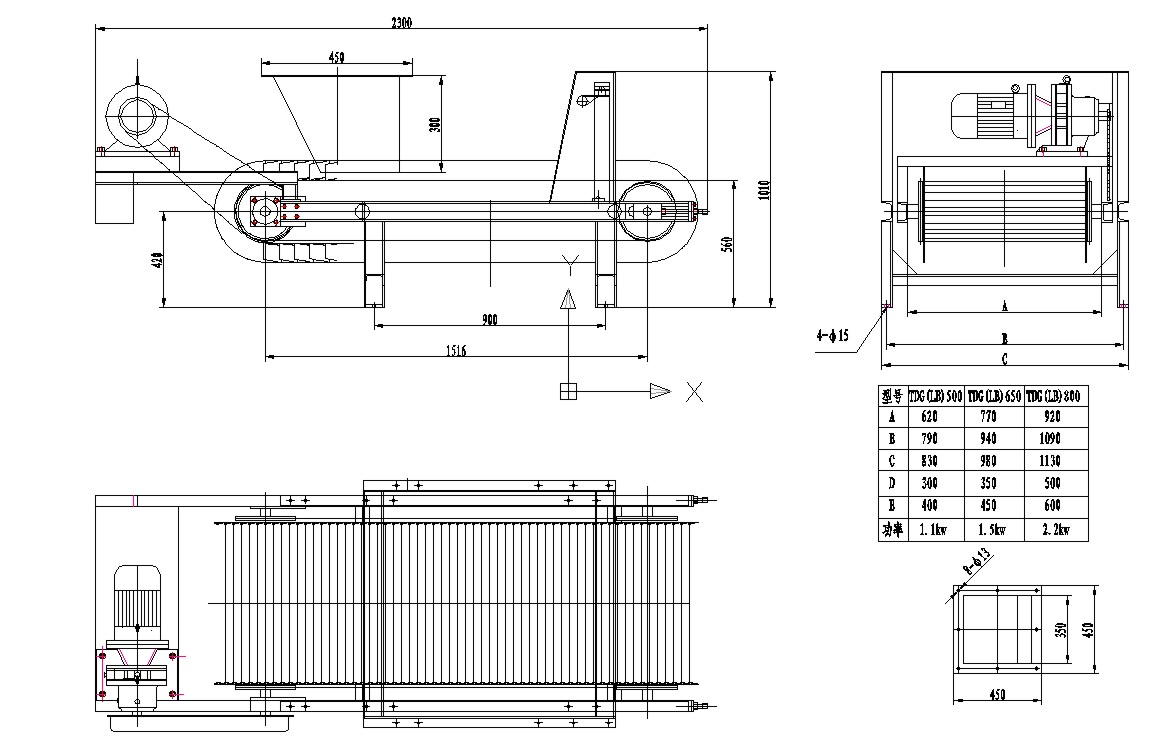 該鏈板給料機適應各類不同外形的物料,具用一定耐沖擊性和適于高溫物料的特點。其同樣采用變頻調速的工作方式,滿足客戶對不同速度要求的工藝需要。
