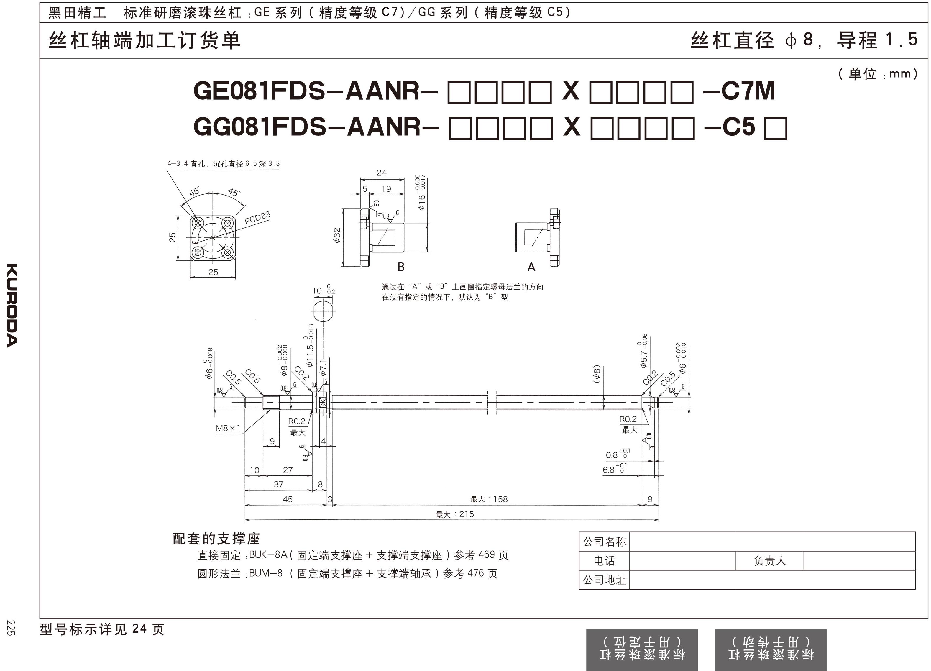 為防止滾珠絲杠因被污染而損傷,GE和GG系列(除了絲杠直徑為8和10的)防塵滾珠絲杠都裝有擦洗器,但是為了能更有效的防塵,可以安裝相應的防護裝置,如防塵罩和收縮蓋