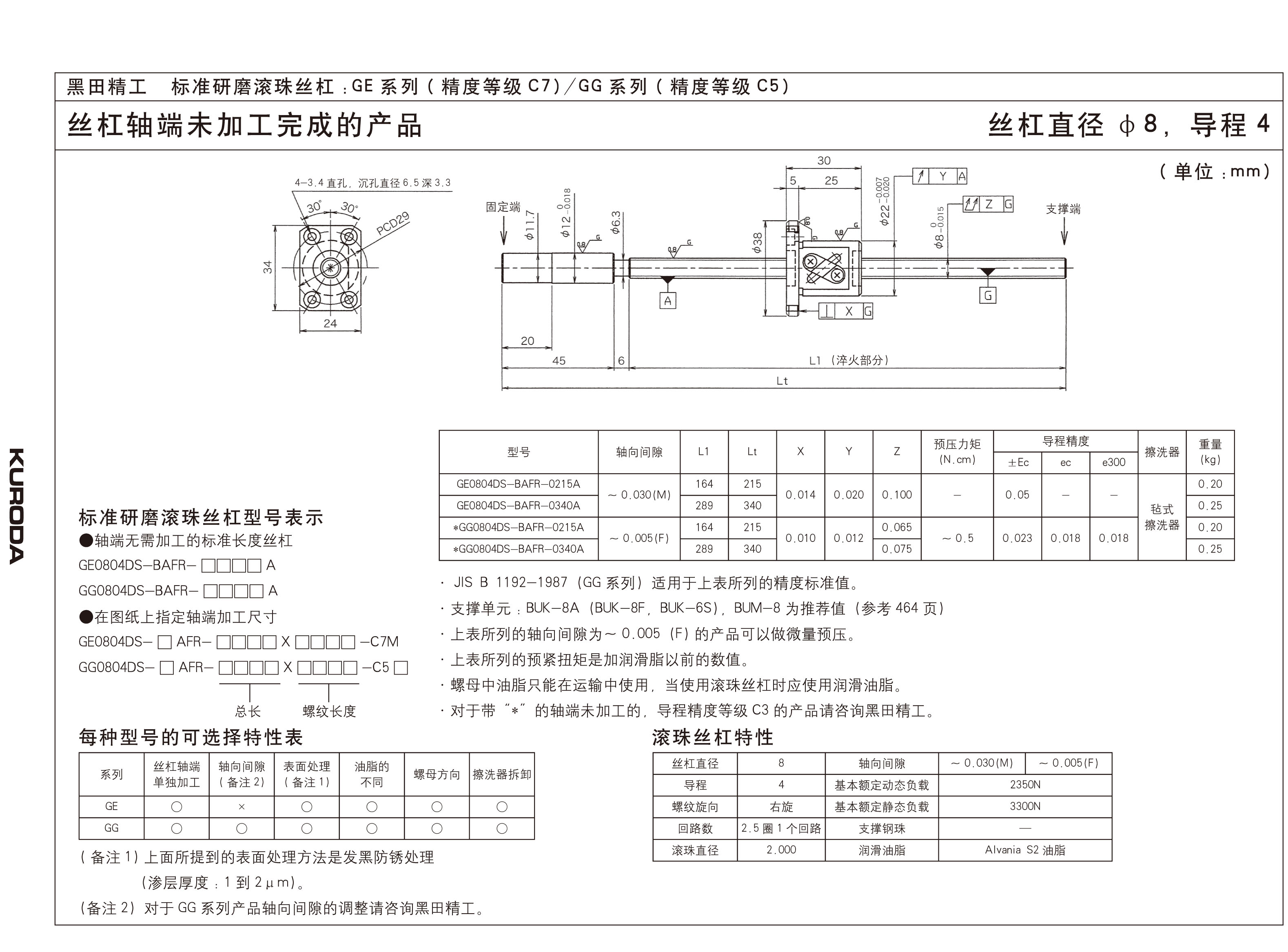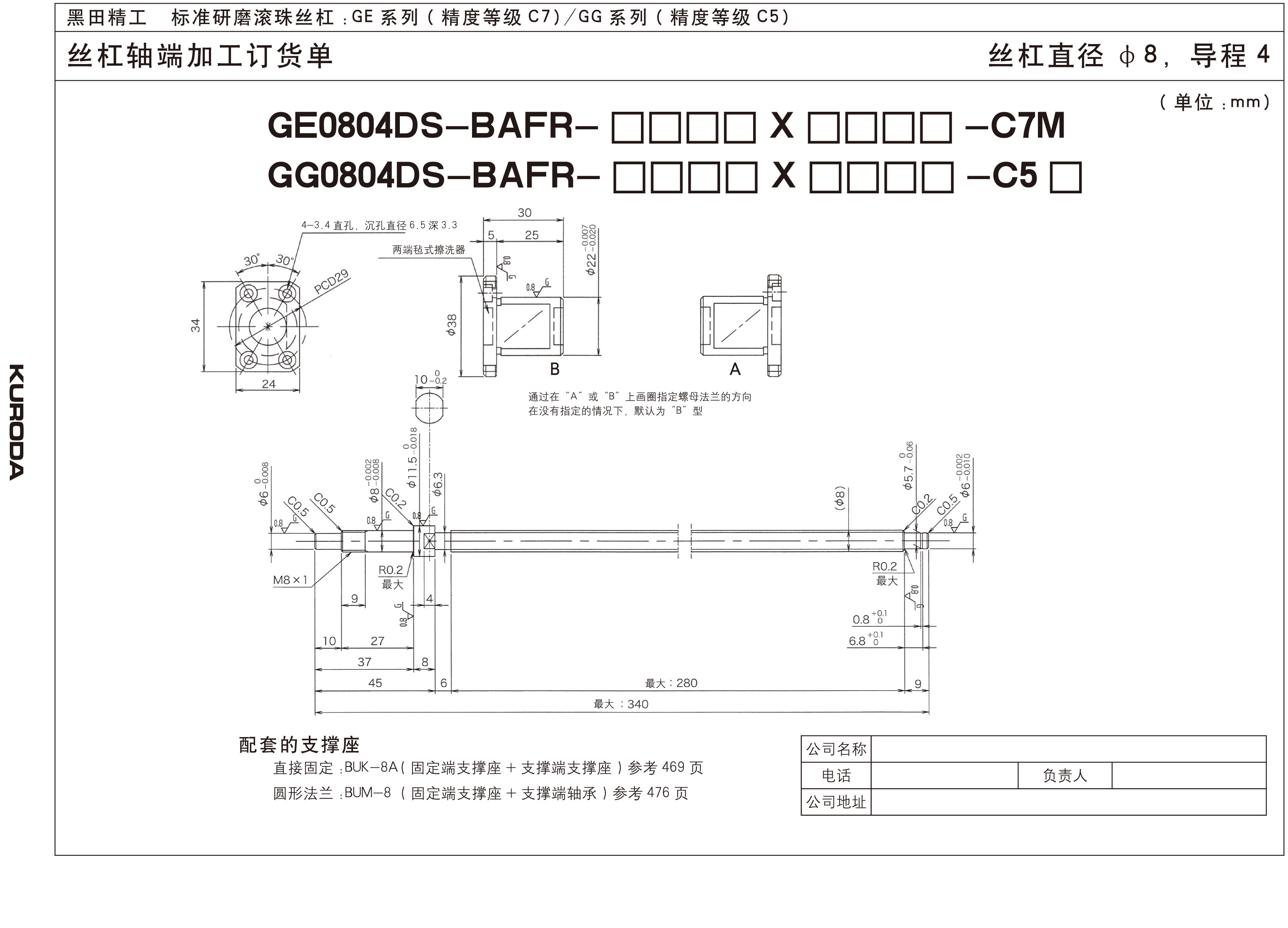 為防止滾珠絲杠因被污染而損傷,GE和GG系列(除了絲杠直徑為8和10的)防塵滾珠絲杠都裝有擦洗器,但是為了能更有效的防塵,可以安裝相應的防護裝置,如防塵罩和收縮蓋