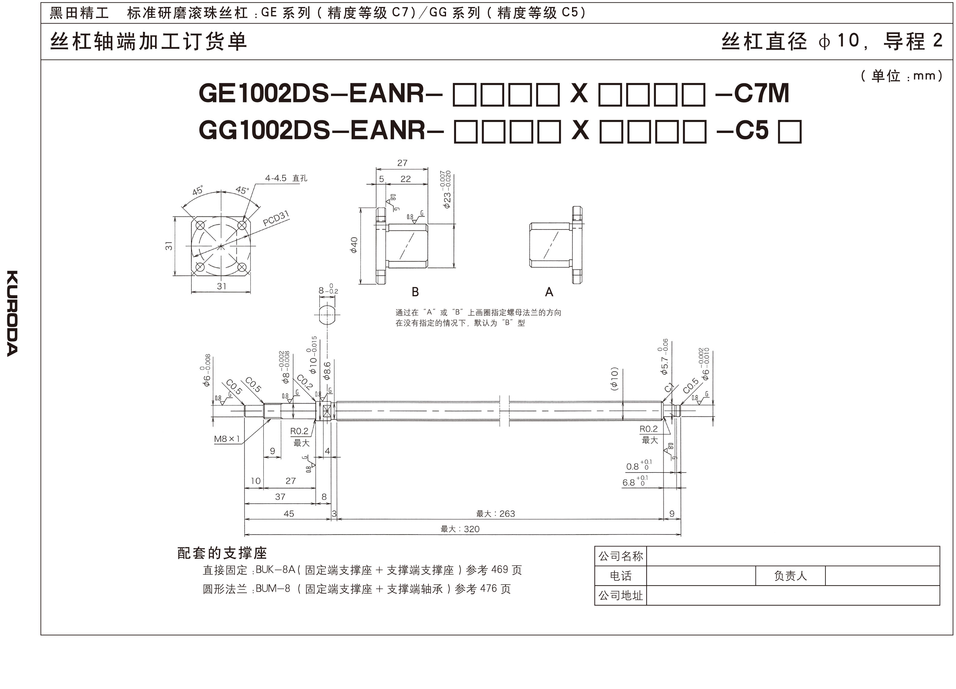 為防止滾珠絲杠因被污染而損傷,GE和GG系列(除了絲杠直徑為8和10的)防塵滾珠絲杠都裝有擦洗器,但是為了能更有效的防塵,可以安裝相應的防護裝置,如防塵罩和收縮蓋