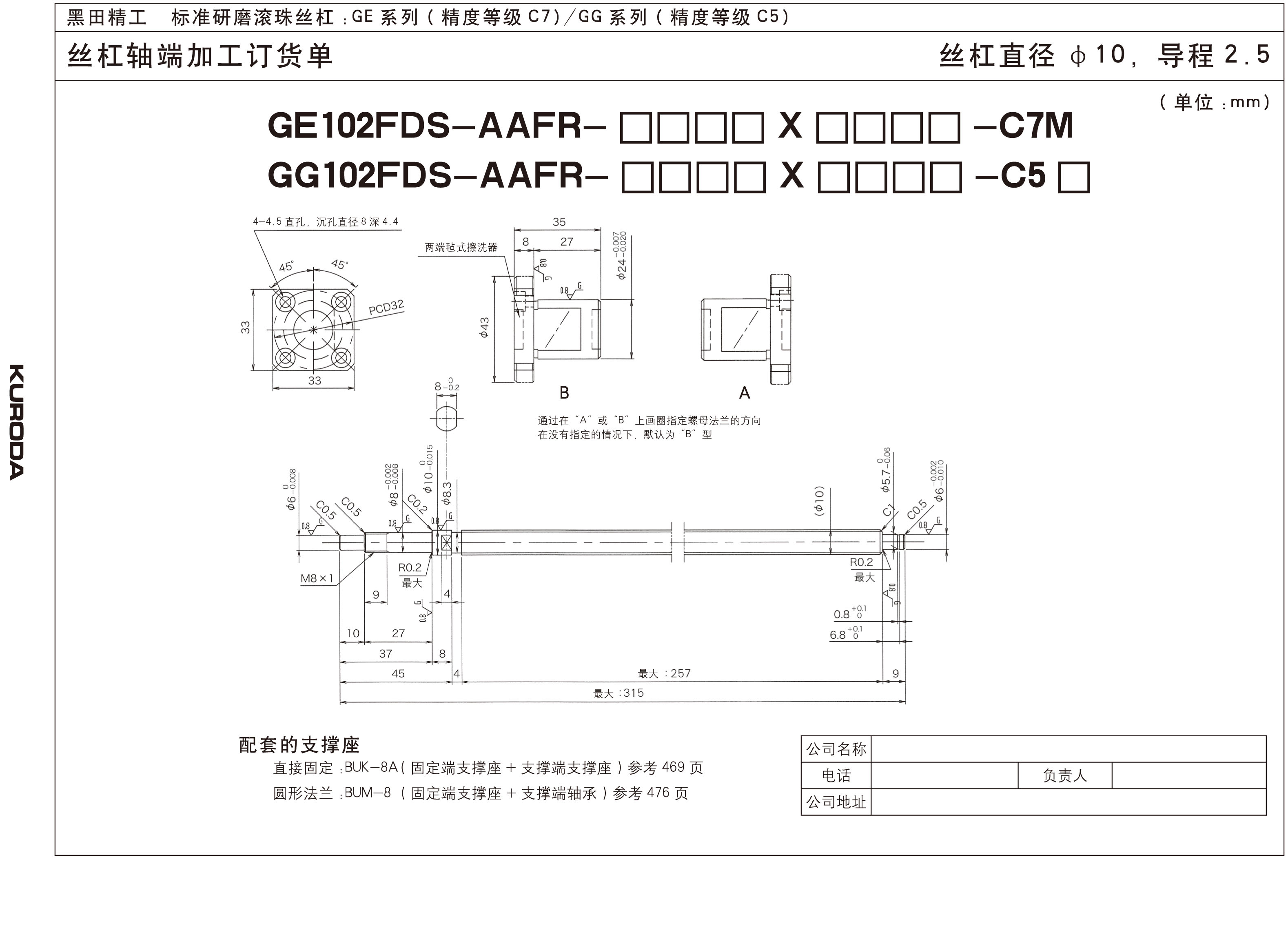 為防止滾珠絲杠因被污染而損傷,GE和GG系列(除了絲杠直徑為8和10的)防塵滾珠絲杠都裝有擦洗器,但是為了能更有效的防塵,可以安裝相應的防護裝置,如防塵罩和收縮蓋