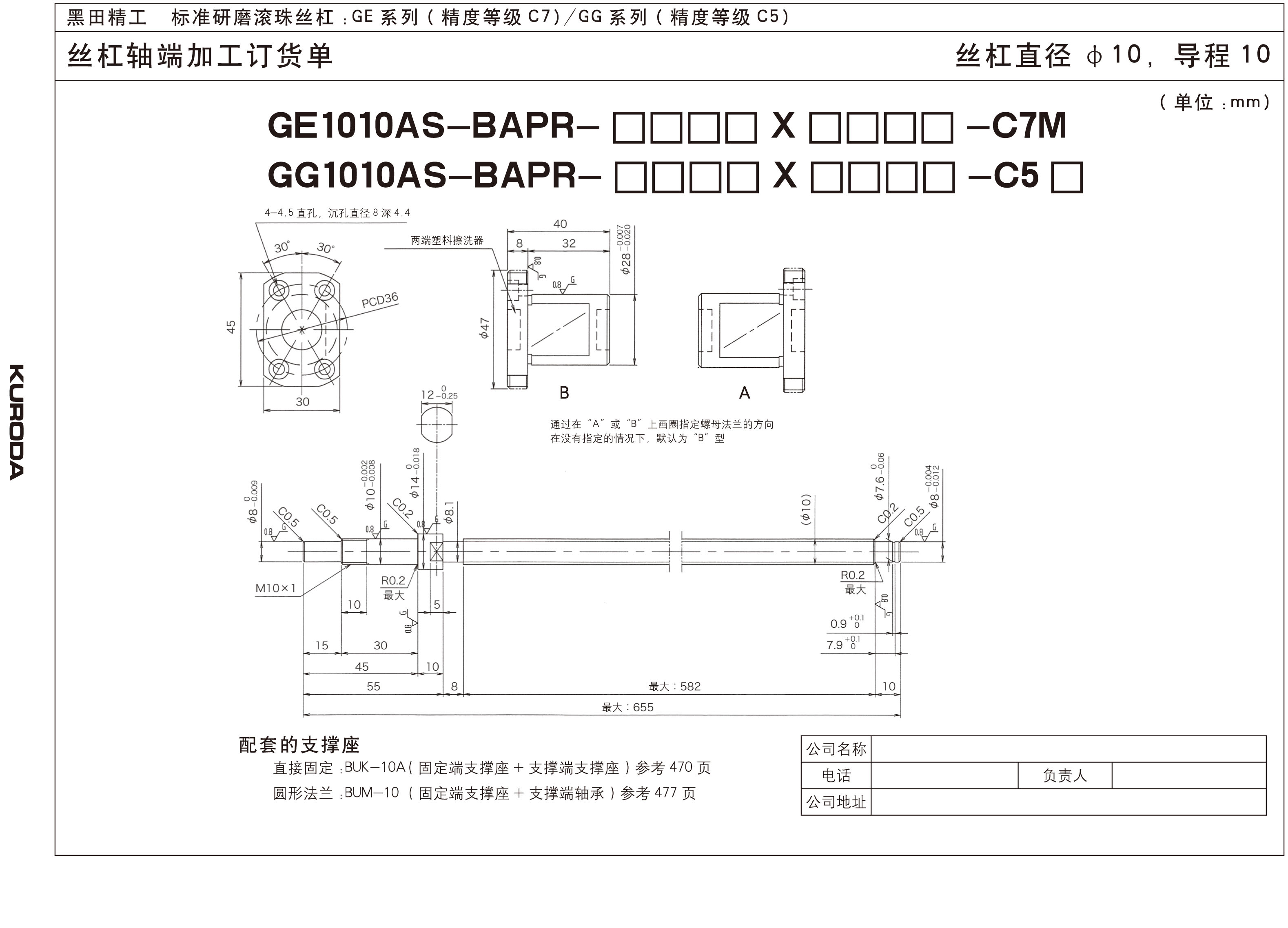 為防止?jié)L珠絲杠因被污染而損傷,GE和GG系列(除了絲杠直徑為8和10的)防塵滾珠絲杠都裝有擦洗器,但是為了能更有效的防塵,可以安裝相應(yīng)的防護(hù)裝置,如防塵罩和收縮蓋