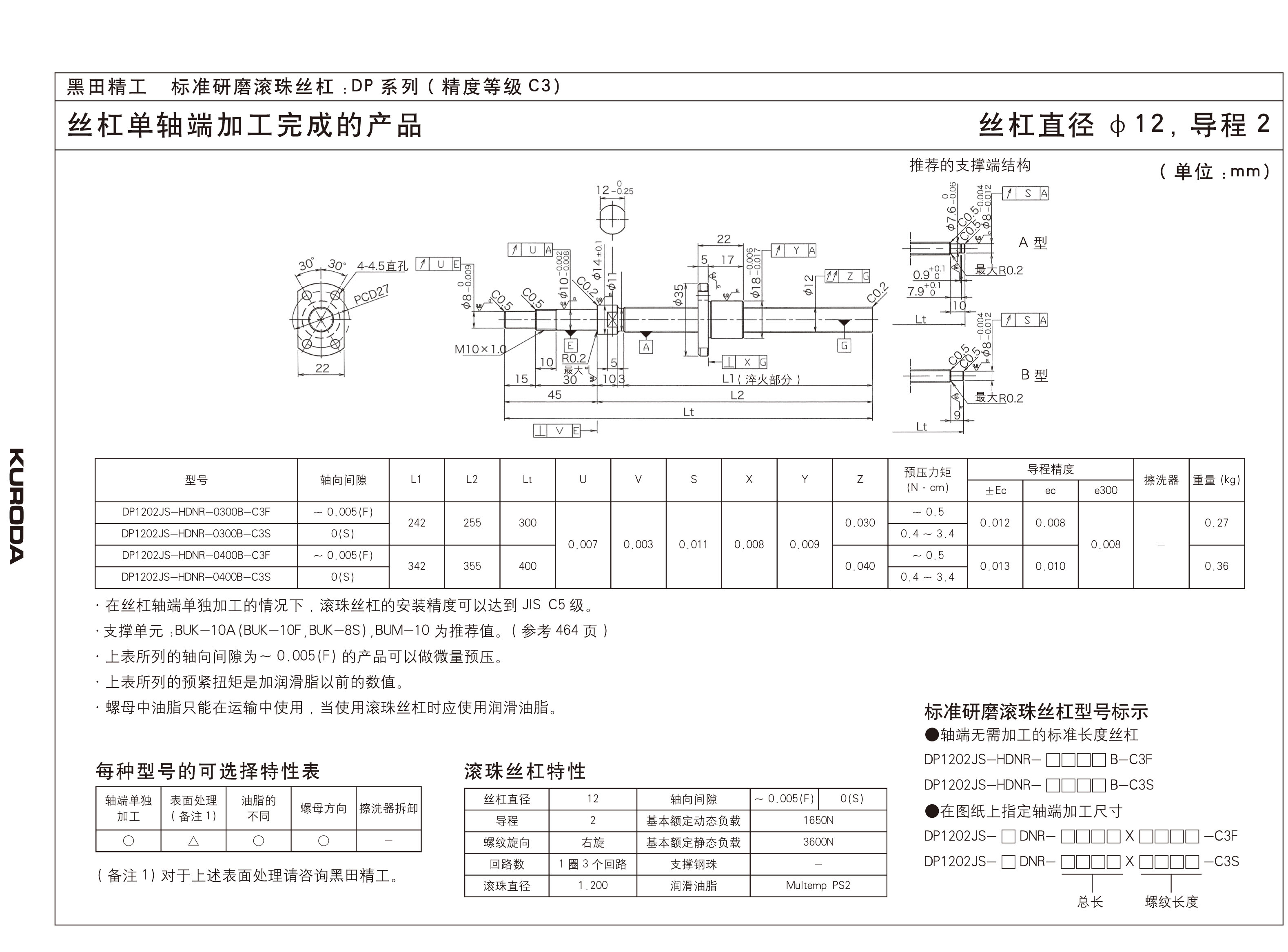 在JIS C3等級中,軸向間隙為S(預(yù)壓型號)軸向間隙為F(小于0.005)的型號系列可以實現(xiàn)高精度進(jìn)給