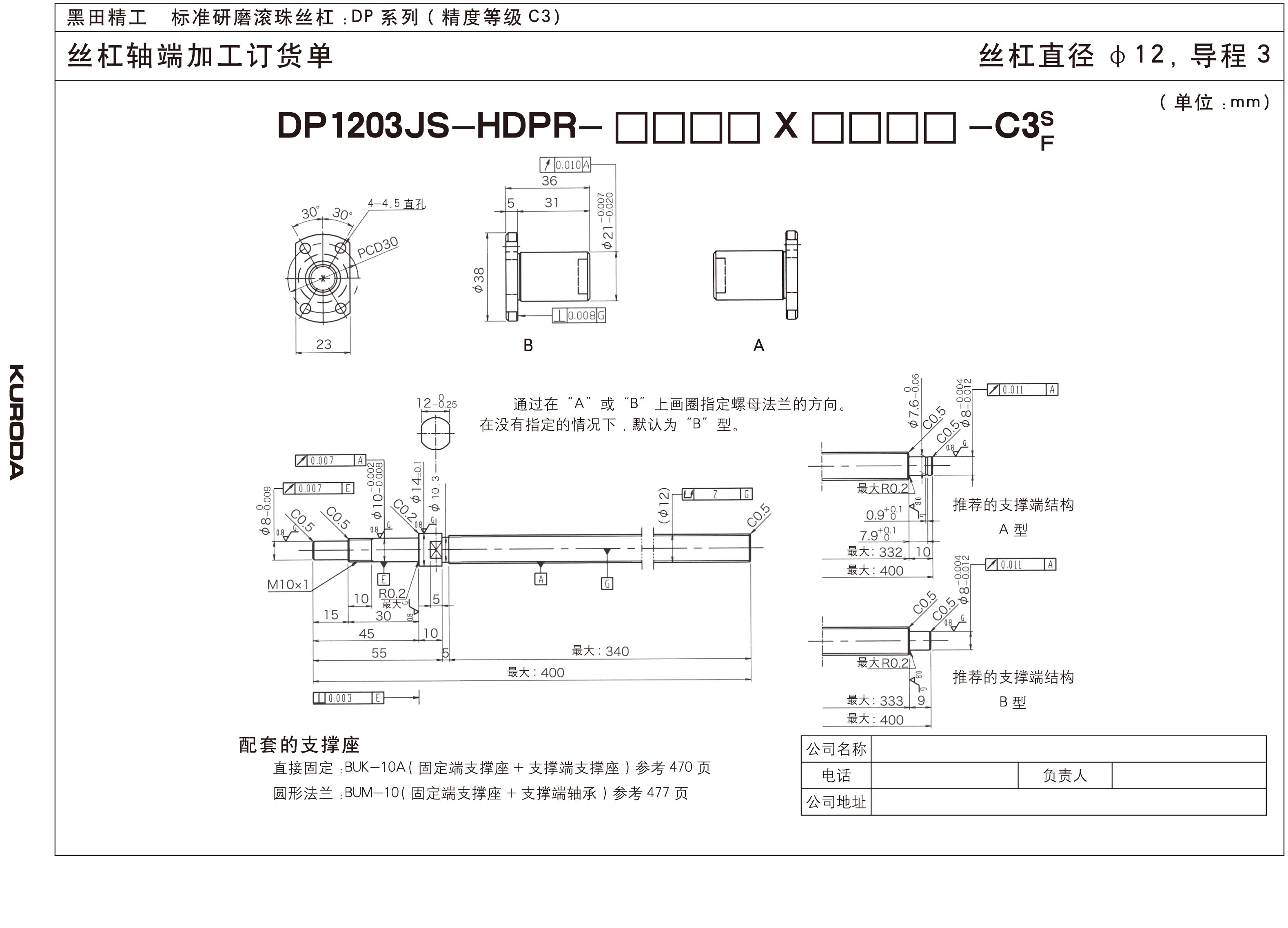 在JIS C3等級中,軸向間隙為S(預壓型號)軸向間隙為F(小于0.005)的型號系列可以實現高精度進給